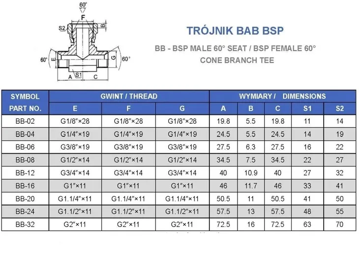 Trójnik calowy BSP służy do łączenia części układów hydraulicznych, w których po obu stronach znajduje się gwint zewnętrzny, natomiast trzeci gwint jest wewnętrzny. XET G 1 CF. BB-16